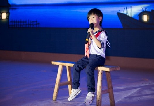 这次年会,组委会用二维动画将这个小故事搬上了舞台。一曲动感的水鼓舞后,全场灯光暗了下来,一轮弯月照亮了海边的渔船和房子,五岁的小男孩坐在长凳上唱起著名的民谣,“月光光照地堂,虾仔你乖乖训落床”稚嫩的童声博得全场雷鸣般的掌声,也拉开了这个故事的序幕……