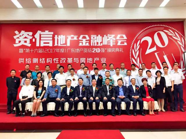2017年6月8日,“资·信”地产金融峰会暨第十六届(2017年度)广东地产资信20强颁奖典礼在广州盛大举行。