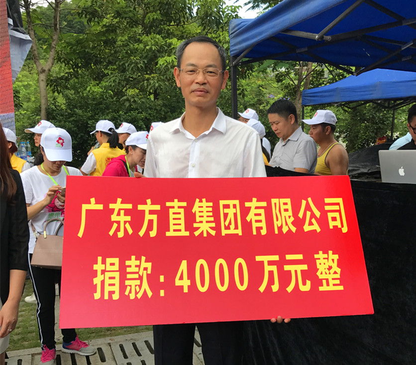 当市委书记、市人大常委会主任陈奕威接受第二批爱心企业捐款时,气氛达到最热烈,台下响起热烈掌声——广东方直集团有限公司捐赠4000万元!
