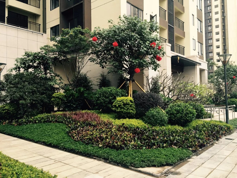 细节收口,精雕细琢。充分利用植物的空间感觉,苗木组团及植物的花期搭配,增添视觉的冲击感。从苗木选材到施工班组挑选,从施工工序、园林铺砖对缝到转角的处理都是要求精于求精。
