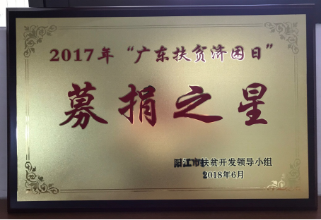 2018年6月28日上午9点,阳江市政府开展 “广东扶贫济困日”表彰活动,阳江市市委书记、市人大常委会主任陈小山同志,市委副书记、市长温湛滨同志,市委副书记、政法委书记、市扶贫开发领导小组组长黎泽林同志以及多家爱心企业代表出席表彰大会。方直集团持续投入和支持阳江市教育事业的发展,此次单项捐赠500万元,用于上洋中学教学楼建设,市委副书记、市长温湛滨同志为方直集团颁发“募捐之星”爱心企业牌匾。