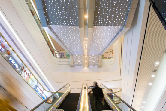 如何增加空间和人群之间的交汇,表现着空间内的流动感。方直FUN STAR天地从细节入手,在各个顾客看得到的位置进行亮化升级,如扶梯加装灯带和星星灯改造,细小的变化让灯光和扶梯动态结合,整体气氛灵动活跃。