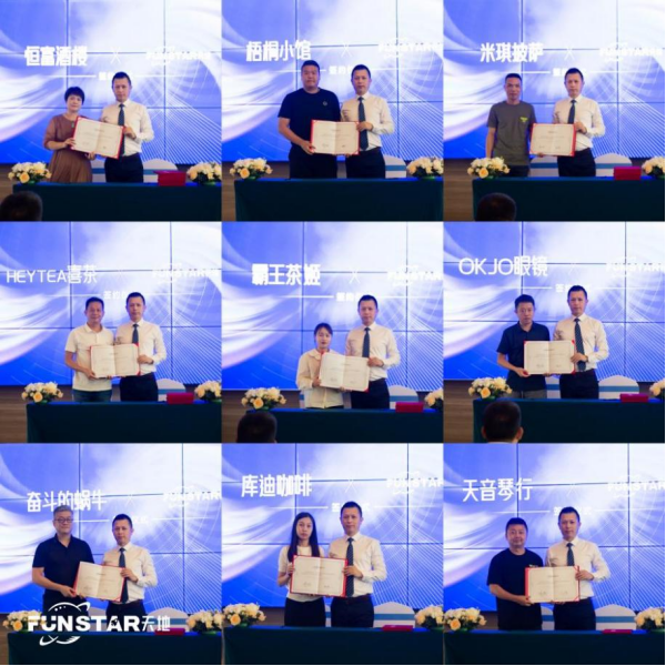2023年4月20日下午,方直FUN STAR天地品牌签约会“向未来•共生长”在方直亚汀酒店6楼宴会厅隆重举行!恒富酒楼、喜茶、霸王茶姬、OKJO眼镜、奋斗的蜗牛、库迪咖啡、天音琴行、梧桐小馆、米琪披萨共9家品牌强势签约入驻方直FUN STAR天地,共同见证方直商业迈上新台阶的历史性时刻,共助方直FUN STAR天地品牌战略、业态结构进一步优化升级!